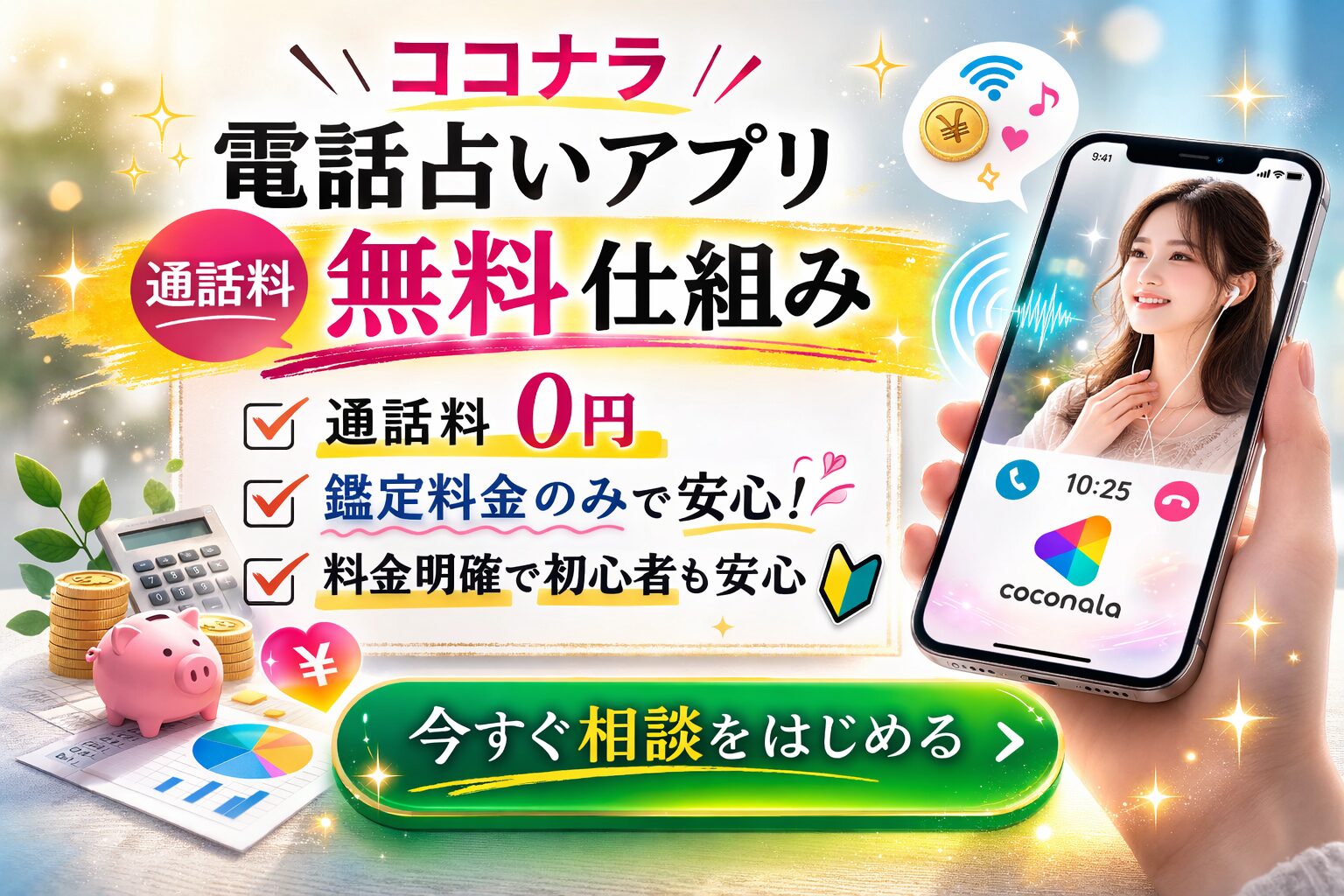 ココナラ 電話占い アプリ 通話料 無料 仕組みは、通話料0円・鑑定料金のみという安心設計だからこそ今すぐ始められます。